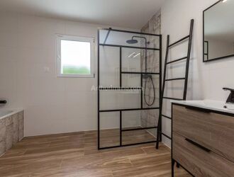 Maison entièrement rénovée en 2011 (toiture, menuiseries, isolation, électricité, chauffage...) et en 2024 (clôture, garage, volets roulants solaires + moustiquaires, panneaux photovoltaïques conso + revente, portail motorisé) d'environ 118 m², cadastrée sur 984 m² de terrain.